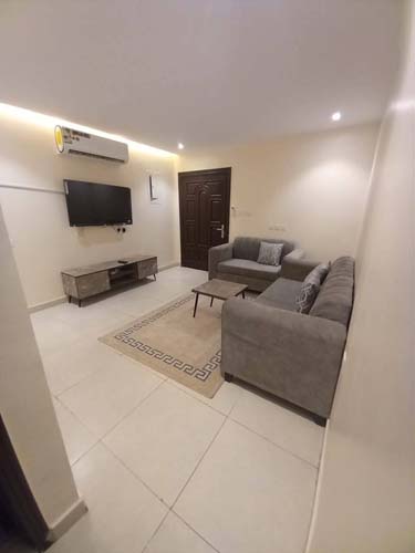 Furnished apartments are available for monthly rent in: Al-Bawadi, Al-Sitteen: Two bedrooms, a living room, a bathroom, and a kitchen.